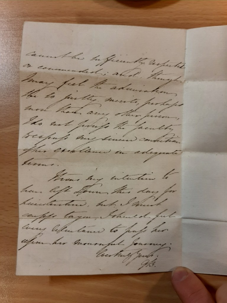 It was here, aged twenty-three, that some of Sarah’s personality begins to form through her archival papers. Young Sarah was a woman of the Georgian court, a consummate gossiper, ‘naturally witty’ without intelligence as one later observer commented, combining a sweet temper with uncontrolled outbursts when threatened or insulted.[iii] She clearly took her nobility and background seriously; in one letter to Georgiana, Marchioness of Worcester in 1814, Sarah wrote: